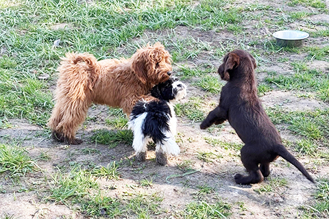 Welpen, die sich schon sehr früh als kleine Raufbolde entpuppen, wird hier frühzeitig Einhalt geboten, sodass man dieses unerwünschte Verhalten schon im Keim erstickt.
